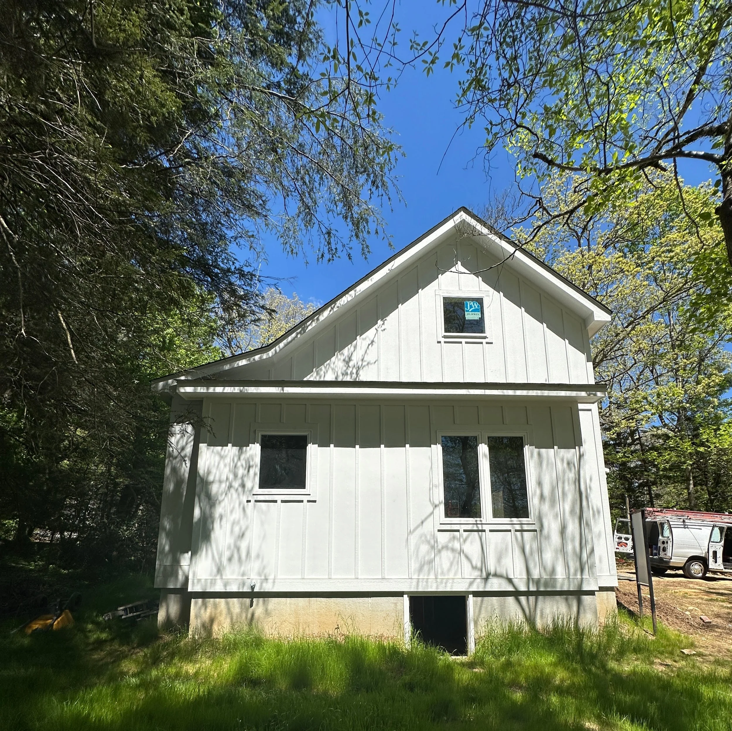 This 1,000 SF retreat near Black Mountain, NC sits on beloved ground. A small cabin built by the Owner’s grandfather stood for decades on the site and held many happy memories of weekend retreats and family gatherings. While the existing home needed to be demolished, the design of the new home incorporated elements from the original and will usher new memories for decades to come.